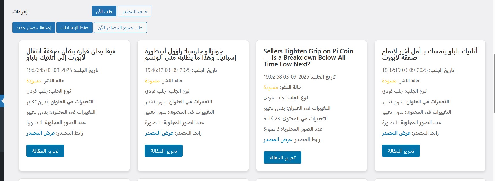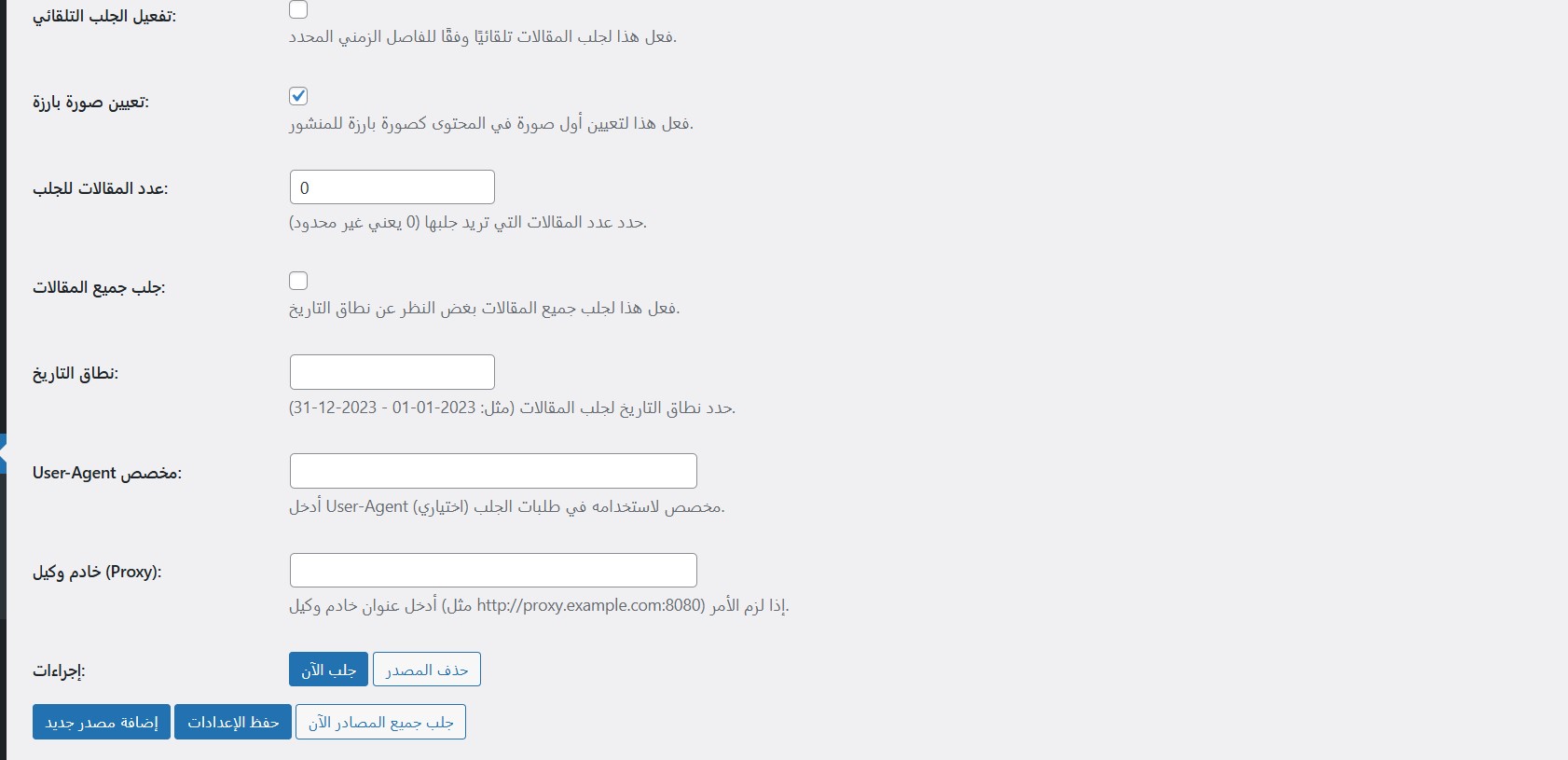 - إعداد المصادر: اختر موجزات RSS أو Atom التي ترغب في سحب المحتوى منها.