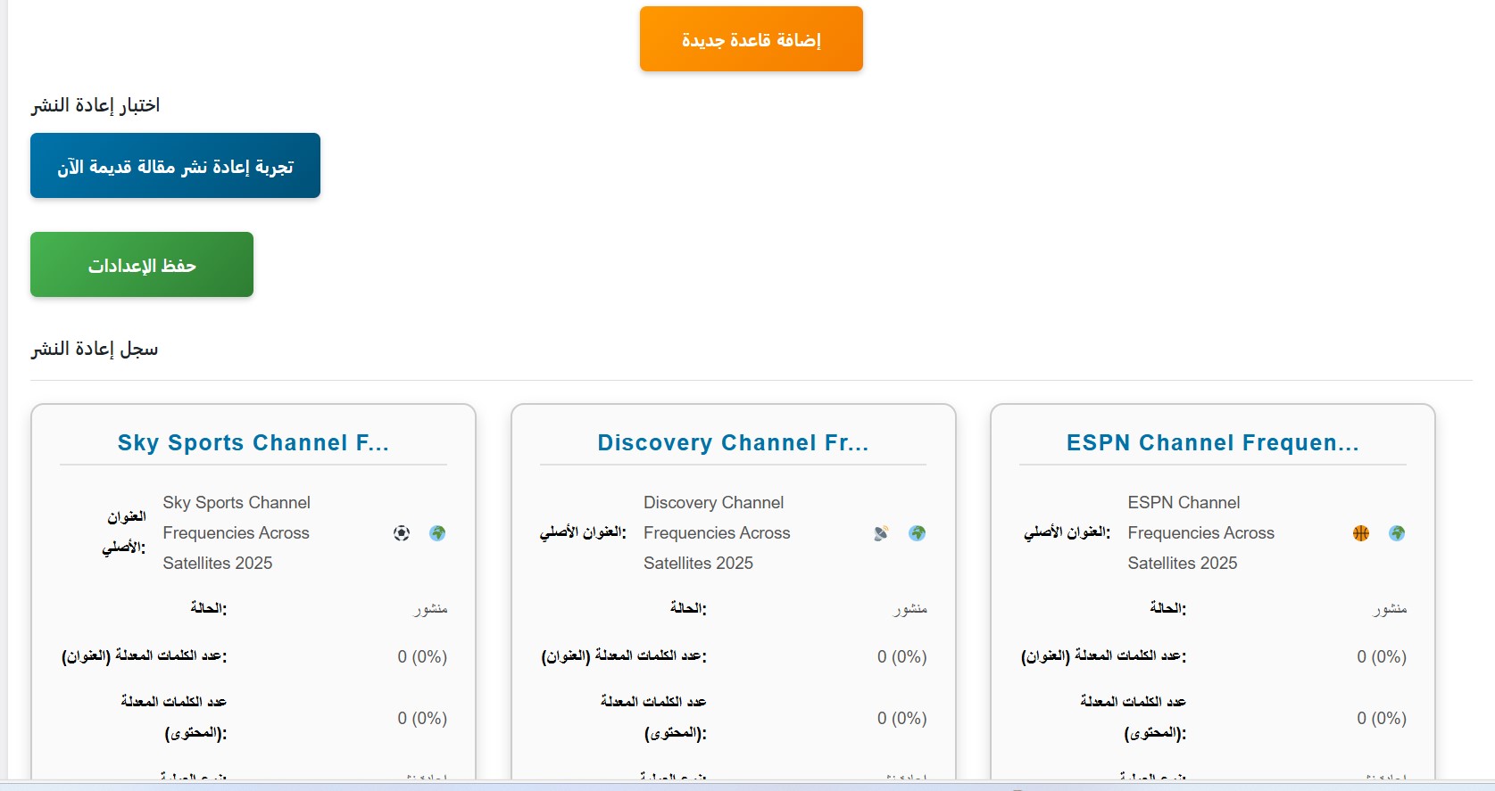 لا داعي للقلق بعد الآن! إضافة Auto Republish Posts هي السلاح السري الذي سيغير قواعد اللعبة، حيث تجمع بين السحب التلقائي للمحتوى، إعادة الصياغة الذكية، وإعادة النشر بطريقة تجعل موقعك نشطًا، حصريًا، وجاهزًا للنجاح.